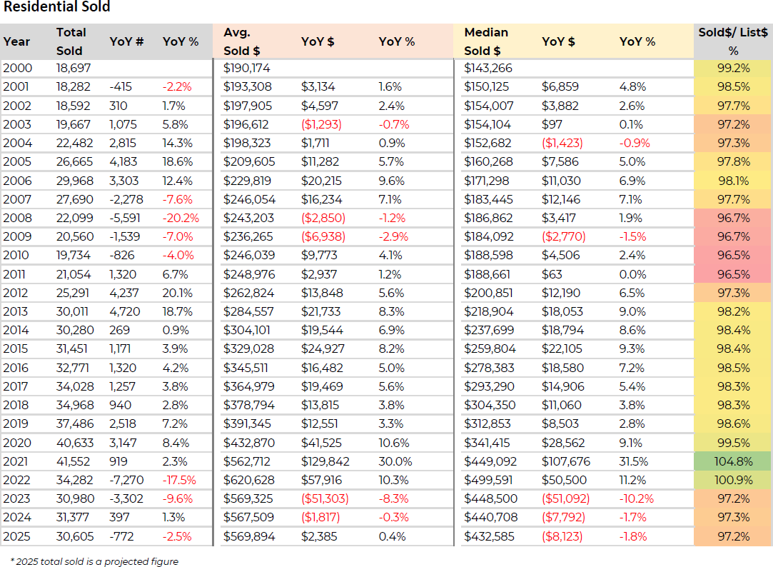 For sellers, this extended downturn means strategy is everything. Pricing homes too aggressively leads to longer days on market and larger discounts at closing. Correctly priced homes are still selling, but sellers no longer have the cushion of surging demand or above-asking offers to bail them out. Buyers, meanwhile, can afford to be selective. With inventory building and discounts in play, they hold more negotiating leverage than at any time in the past decade.