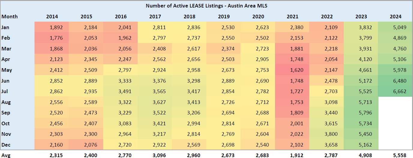 Austin Area MLS Sees Record High in Active Lease Listings for July 2024
