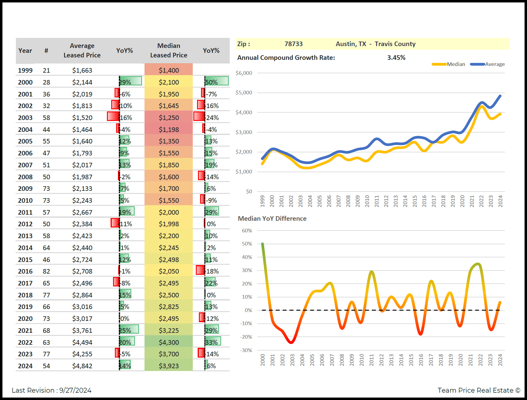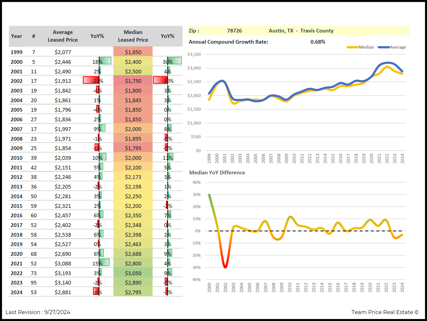 Overall, understanding these key zip codes—one experiencing strong growth and the other facing challenges—provides valuable insights into Austin's lease market. As rental prices continue to fluctuate across the city, tenants and investors should carefully consider not only current prices but also long-term trends and the underlying factors driving market shifts. The data from 2023 to 2024 offers a detailed view of where Austin’s lease market is heading and what to expect in the near future.