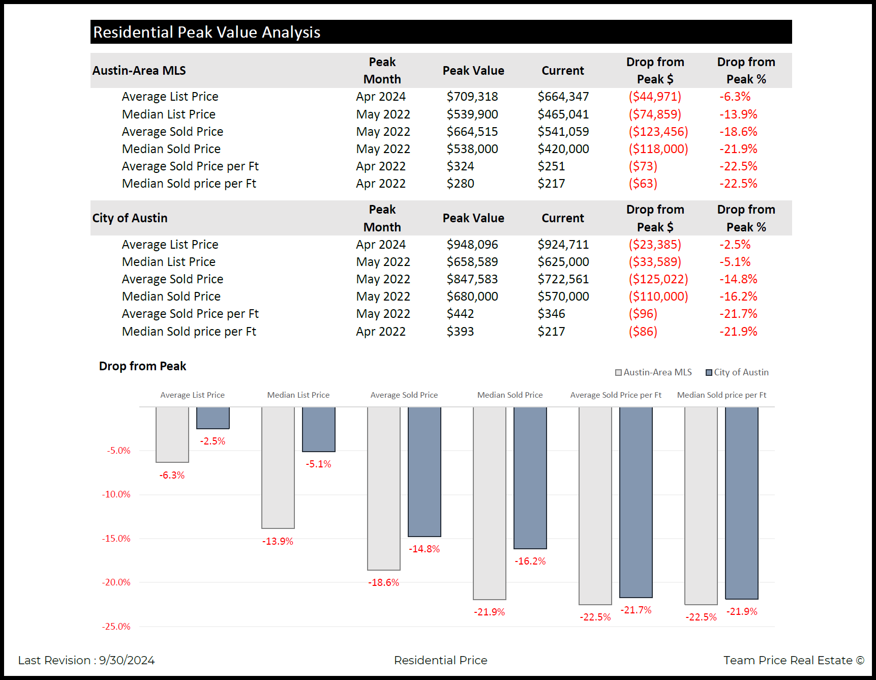 These declines are significant and offer valuable insights into the state of the Austin real estate market. For buyers, this may represent a favorable time to enter the market, with prices being lower than their peak. Sellers, on the other hand, may need to adjust their strategies, pricing their homes more competitively to attract buyers in a market that has shifted away from its peak values. Regardless of whether you're buying or selling, staying informed about the latest trends in the Austin real estate market is crucial for making smart decisions.