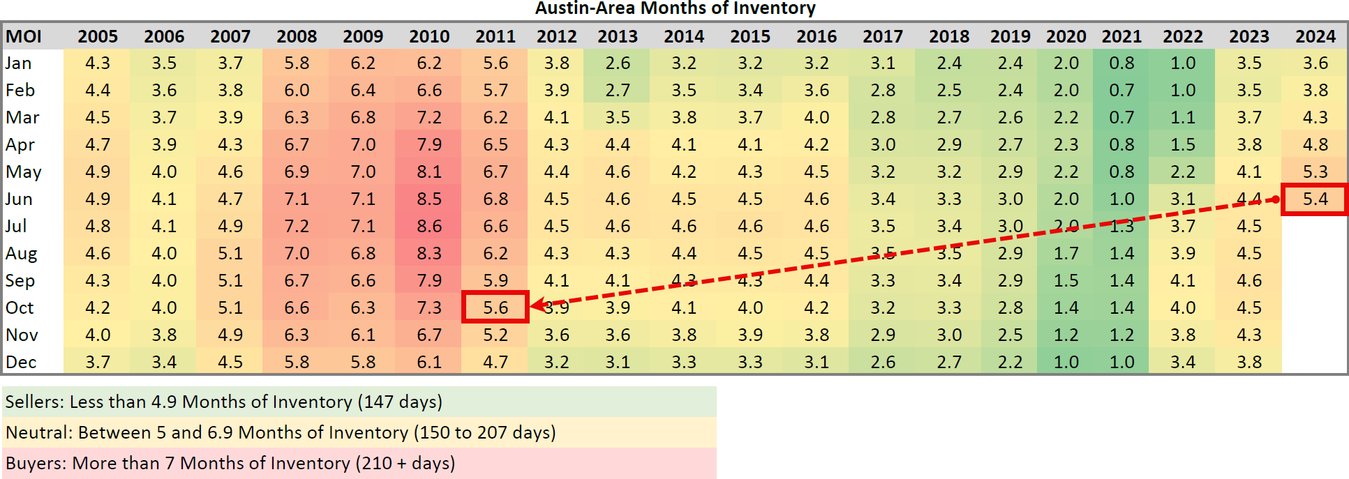 To put this into perspective, the last time the inventory levels were this high was in October 2011. This represents a span of over 12 years, or 152 months, highlighting the significant changes and fluctuations that have occurred in the Austin housing market over more than a decade.