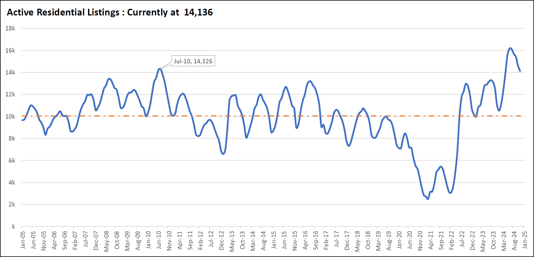 The current MOI of 4.96 suggests a market dynamic where demand is rising again, possibly due to more stable interest rates and a rebound in buyer confidence. This figure signals a shift back from the neutral and buyer-leaning market conditions observed earlier this year, where MOI was often above 5 months. The recent decline below the 5-month threshold suggests a tightening market where sellers have more leverage, and properties are moving at a quicker pace.