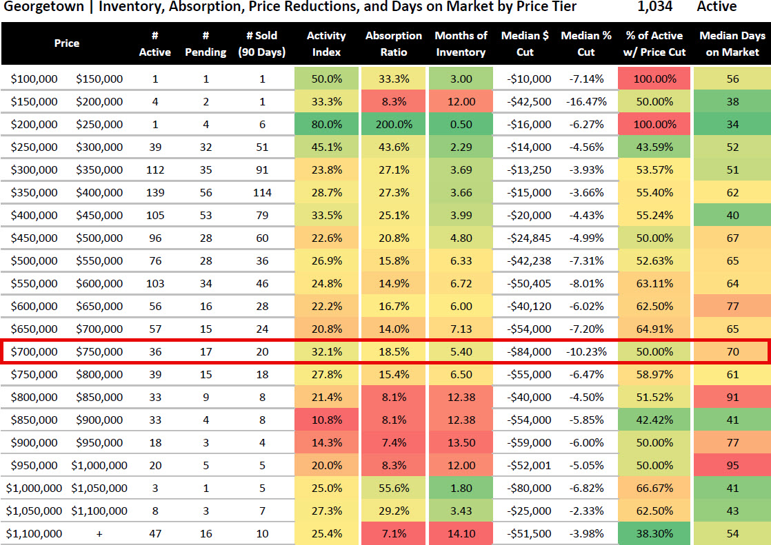 Georgetown Real Estate Market Data: Full Price Tier Breakdown