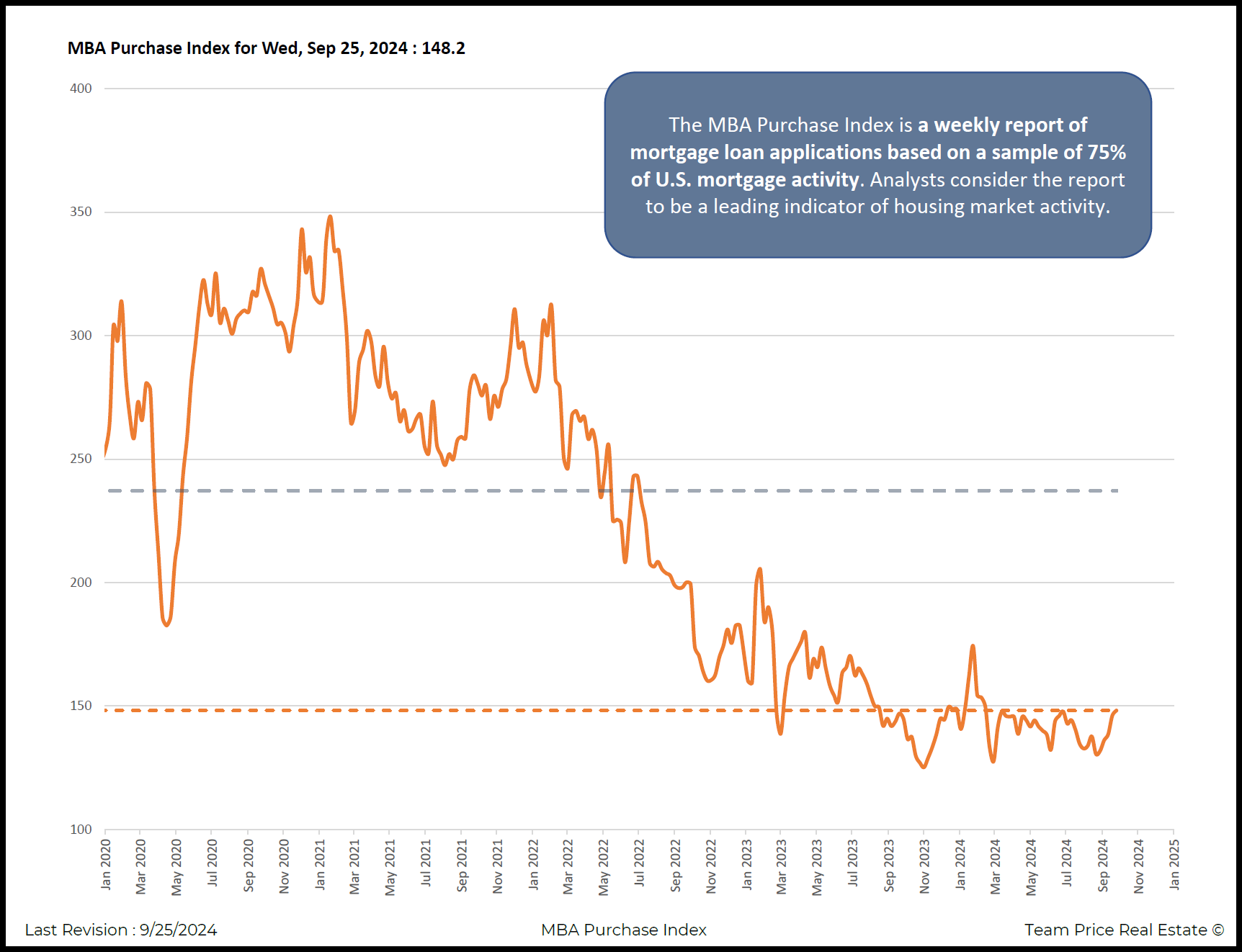The Mortgage Bankers Association (MBA) Purchase Index for September 25, 2024, came in at 148.2, marking a significant development in the U.S. housing market. This weekly report, which captures mortgage loan applications for purchasing homes, represents approximately 75% of U.S. mortgage activity. As a key leading indicator, the MBA Purchase Index provides insights into the demand for home purchases across the country and serves as a reflection of broader economic conditions.