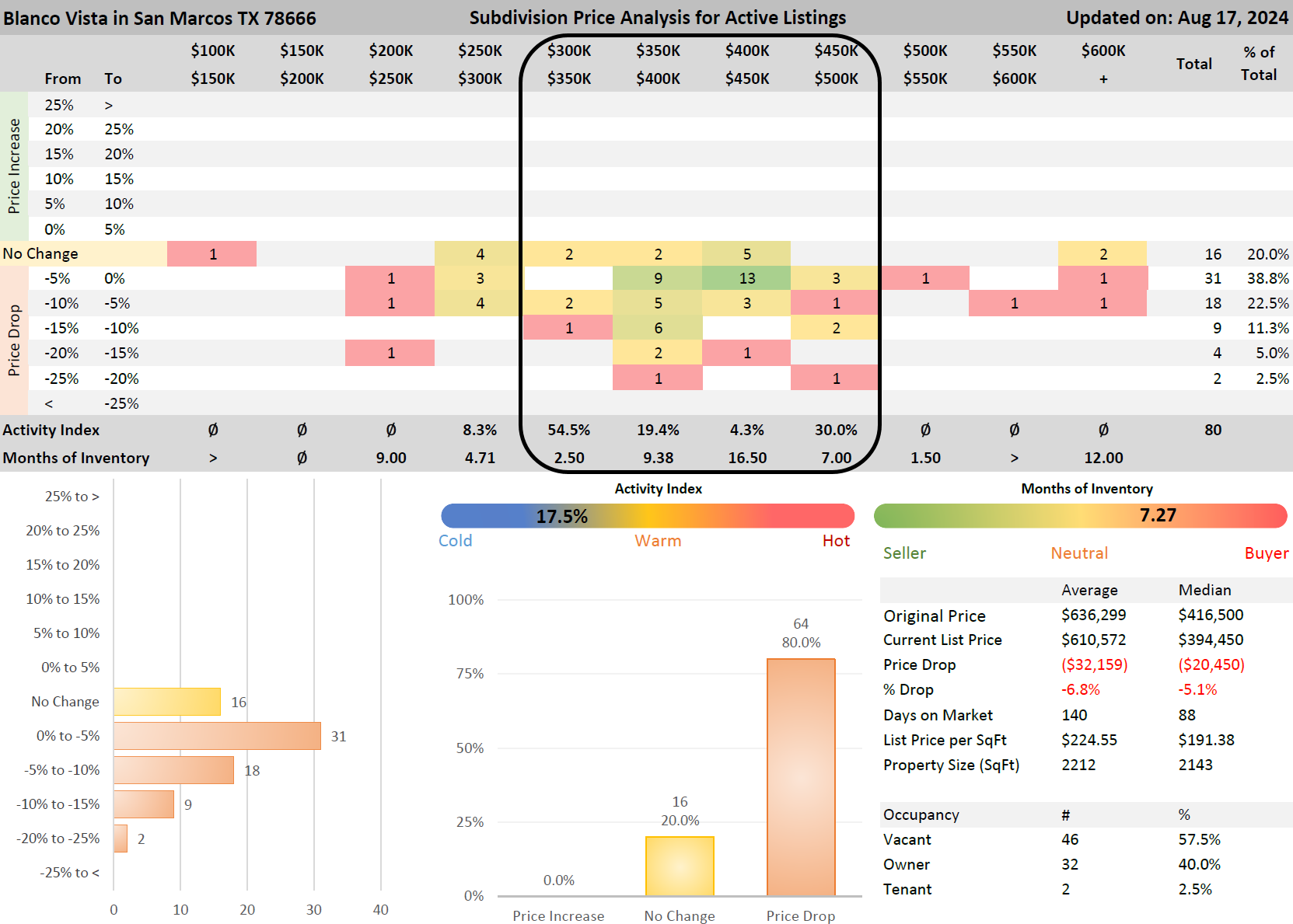 August 17 2024 : In the world of real estate, price points matter more than anything else. Nowhere is this more evident than in Blanco Vista, a vibrant community in San Marcos, Texas. The latest data from this market underscores how dramatically demand shifts depending on where a property is priced, revealing crucial insights for anyone looking to buy or sell a home in this area.