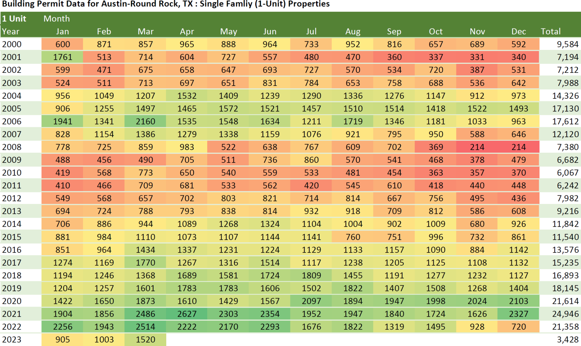 Austin, Texas has experienced substantial growth over the past two decades, with its thriving economy and vibrant culture attracting both businesses and individuals. As the city continues to expand, so does its demand for housing. In this article, we will delve into the trends in building permits for single-family homes in the Austin-Round Rock-Georgetown Metropolitan Statistical Area (MSA) from 2000 to 2023, using data sourced from the U.S. Census Bureau. This analysis aims to provide valuable insights into the local housing market and its trajectory.