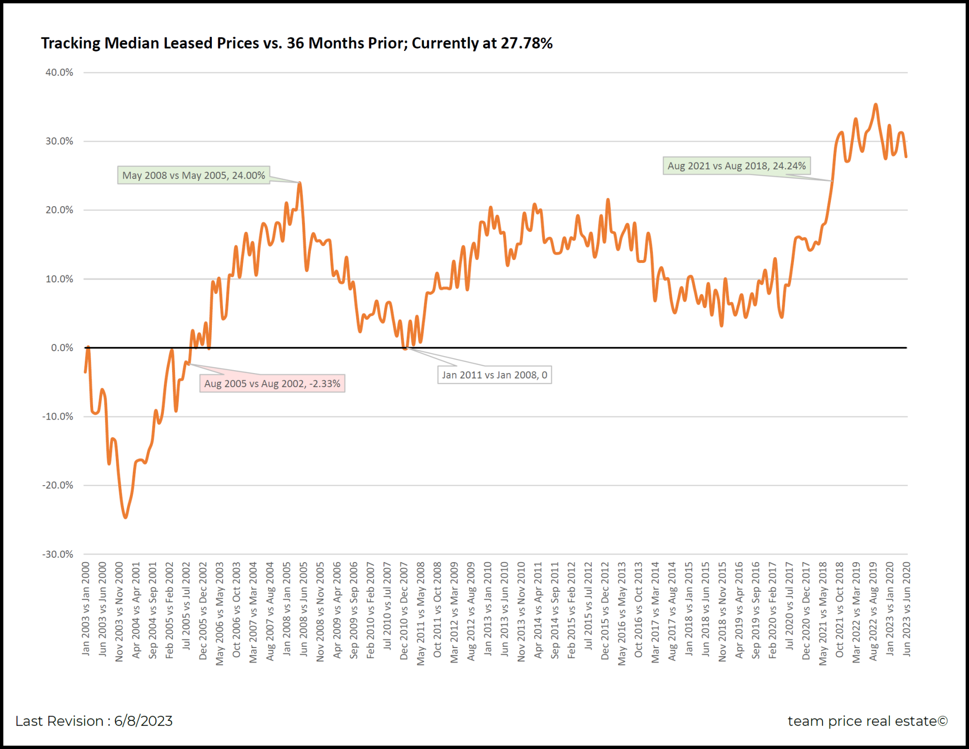 Austin's rental market has demonstrated remarkable resilience and consistent growth amidst the dynamic real estate landscape. By conducting a comprehensive analysis of the median leased prices since January 2000, we can gain valuable insights into the factors that have contributed to its enduring success. In this article, we delve into the trends and patterns, focusing on the percentage increase compared to the same month 36 months prior, to provide a comprehensive understanding of Austin's thriving rental market.