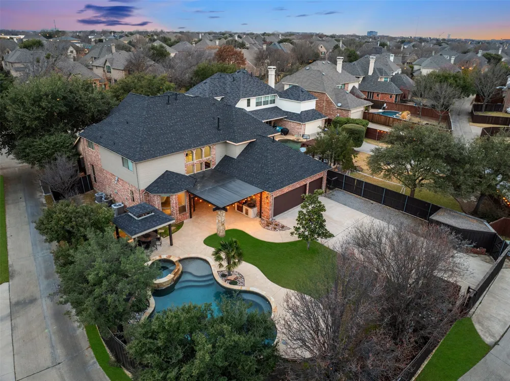 One of the largest lots in Twin Creeks 3, and what about that backyard! Gorgeous Riverbend pebbletech pool with tanning ledge and oversized spa, outdoor kitchen with grill & Blackstone, outdoor living area, plus additional pergola dining area. Oversized driveway with an electric gate and plenty of yard space, including a dog run! Located in a quiet culdesac, this beautiful home has been immaculately maintained. Real hardwoods, plantation shutters, and 8 foot doors downstairs. Two story study, dining with wainscoting and faux french doors viewing a covered front porch. The gourmet kitchen boasts a DSC 48 “ commercial cooktop with 6 burners plus a griddle & a prof vent system with warming shelf & infrared warming lamps. Kitchenaid stainless steel double ovens with convection & a microwave. Lots of counterspace, including an island, breakfast bar, and butler’s pantry, all with granite tops. Walk-in pantry. The nook features built-in cabinets & a desk.Two-story family room with a wall of windows, BI entertainment center, stone FP w gas logs. The primary bedroom is large with sitting area and vaulted ceiling. The primary bath has an updated shower with modern tile as well as the surround for the jacuzzi tub. Two sink areas & vanity area. Large walk-in closet with off-season rods. An additional guest suite is located downstairs with its own full bath featuring a walk-in shower. Walk through popcorn bar between game and media room is plumbed for a sink. Large media with sconces, screen & projector, and built-in speakers.Two bedrooms, 2 full baths up, plus second level of study with built-ins. Two large walk out attic storage areas upstairs. Three-car oversized, insulated garage with a workstation, sink, and 220V outlet. Hidden storage shed. So..much..more - see narrative in documents.