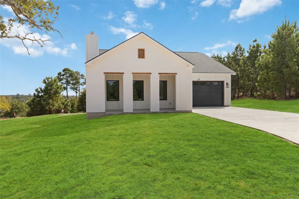 This beautiful single-story home sits on nearly 1.5 acres, just minutes from downtown Bastrop. It features modern stainless steel appliances, sleek vinyl plank flooring, and glass shower doors. The open concept and high ceilings provide a spacious feel, while recessed lighting highlights the granite countertops throughout the home. The energy efficiency is a standout feature, thanks to spray foam insulation, which provides superior thermal performance and keeps the home cool in the summer and warm in the winter. Step outside to enjoy stunning views from the back deck. Property supported by a 300-foot water well and the yards sprayed with Bermuda hydroseed. This 3-bedroom, 2-bath gem also includes a dual vanity in the primary bath, making it the perfect retreat.