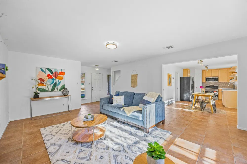 Welcome to 4107 Stonecroft Drive, a delightful two-story single-family home situated in the highly desirable Southwest Austin area. Built in 1983, this residence offers 1,481 square feet of thoughtfully designed living space with 3 bedrooms and 2.5 bathrooms. The interior features a spacious, open floor plan with a cozy fireplace, creating the perfect ambiance for relaxation or entertaining. Each bedroom is equipped with walk-in closets, ensuring ample storage throughout the home. This property has been meticulously updated to enhance both style and functionality. Recent improvements include fresh interior paint, maple kitchen cabinetry, a stainless steel gas range and microwave, a stylish kitchen backsplash, quartz countertops, a fully updated primary bathroom, and vinyl windows with a new sliding glass door. Additional updates, such as the steam-cleaned carpets, exterior siding, water heater, HVAC system, Google Fiber, and more, ensure quality and durability for years to come. Nestled on a 7,736-square-foot corner lot, the home offers generous outdoor space, perfect for gardening, play, or relaxation. Its prime location directly across from a lush greenbelt with trails and native plants adds to the natural charm. The attached garage provides convenient parking, storage, and laundry hookups. Proximity to AISD schools and Sunset Valley shopping centers further elevates the convenience of this beautiful home. Combining comfort, style, and a fantastic location, 4107 Stonecroft Drive is a true gem. Schedule your private tour today and discover everything this exceptional home has to offer!